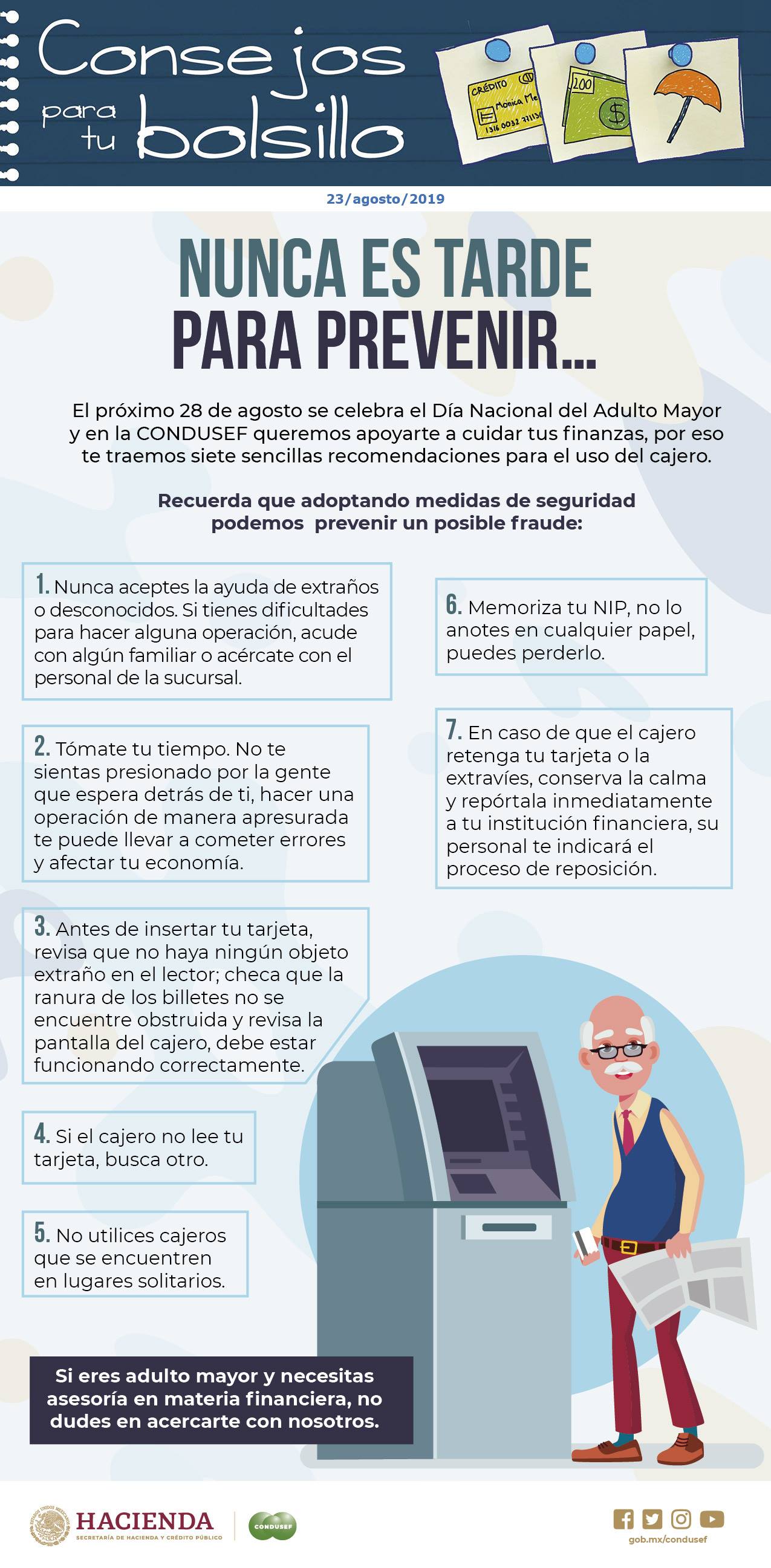 Cada vez es mayor la cantidad de robos en los cajeros automáticos, sobre todo a adultos mayores. Sigue estas recomendaciones de seguridad y evita ser víctima de un asalto al usar un cajero automático.