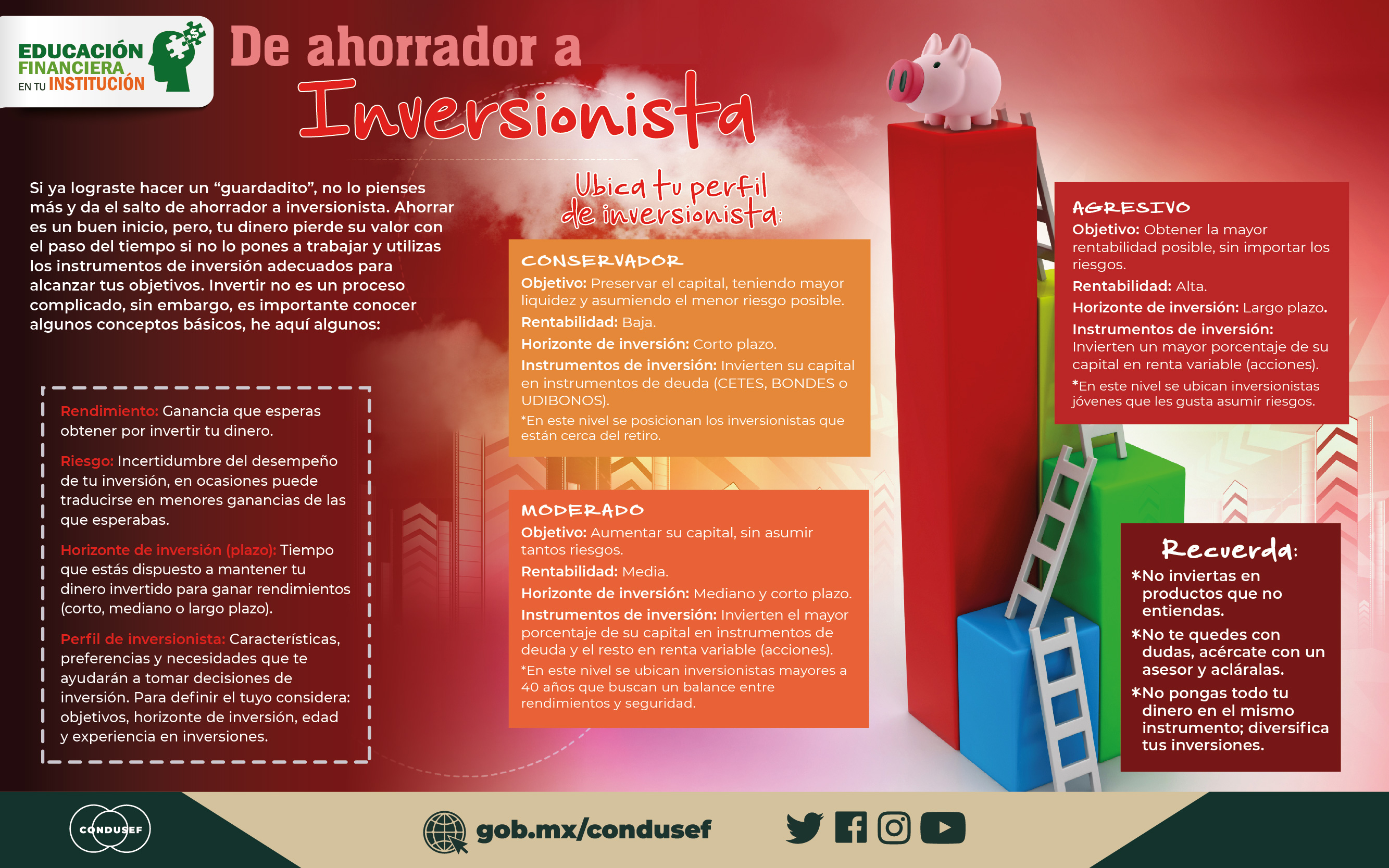 Algunas veces creemos que para ser un inversionista debemos tener miles de pesos. Sin embargo, podemos iniciar con pequeñas cantidades que poco a poco irán aumentando. Ubica tu perfil y conviértete en un inversionista.