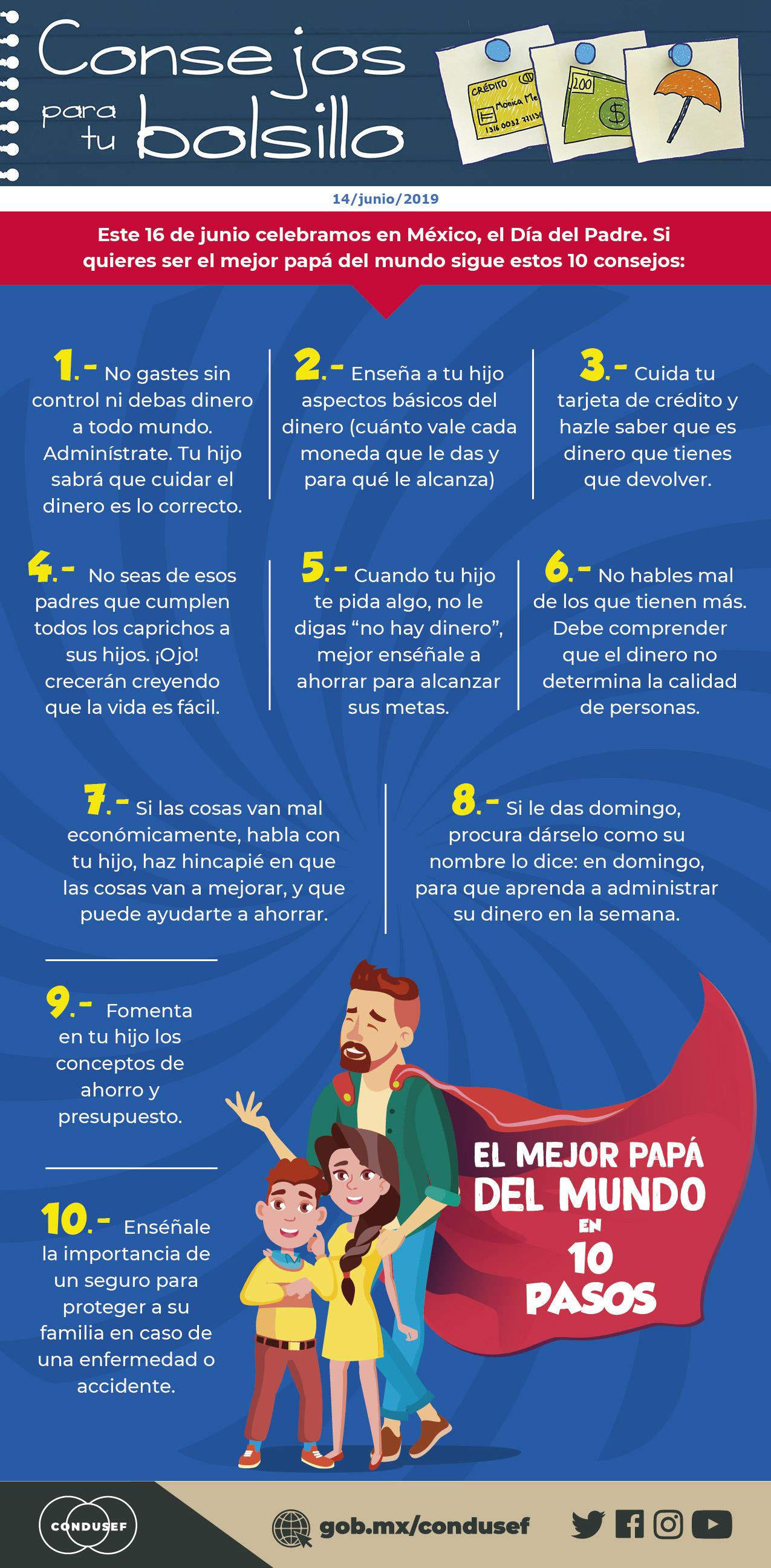 Sigue los siguientes consejos y conviértete en el mejor papá del mundo, enseña a tus hijos desde pequeños a cuidar el dinero. ¡Feliz día del Padre!