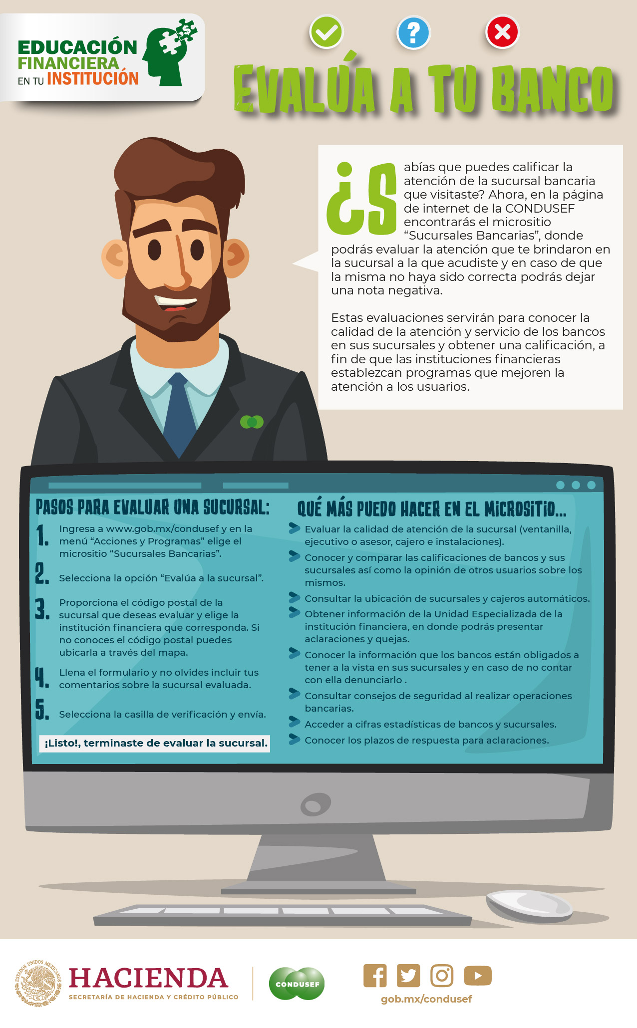 Con la finalidad de conocer la calidad de las instituciones bancarias, es importante dar tu opinión acerca de la sucursal a la cual asistes. Es muy sencillo, te dejamos los pasos para evaluarla y algunas recomendaciones que puedes realizar durante tu navegación en el sitio.