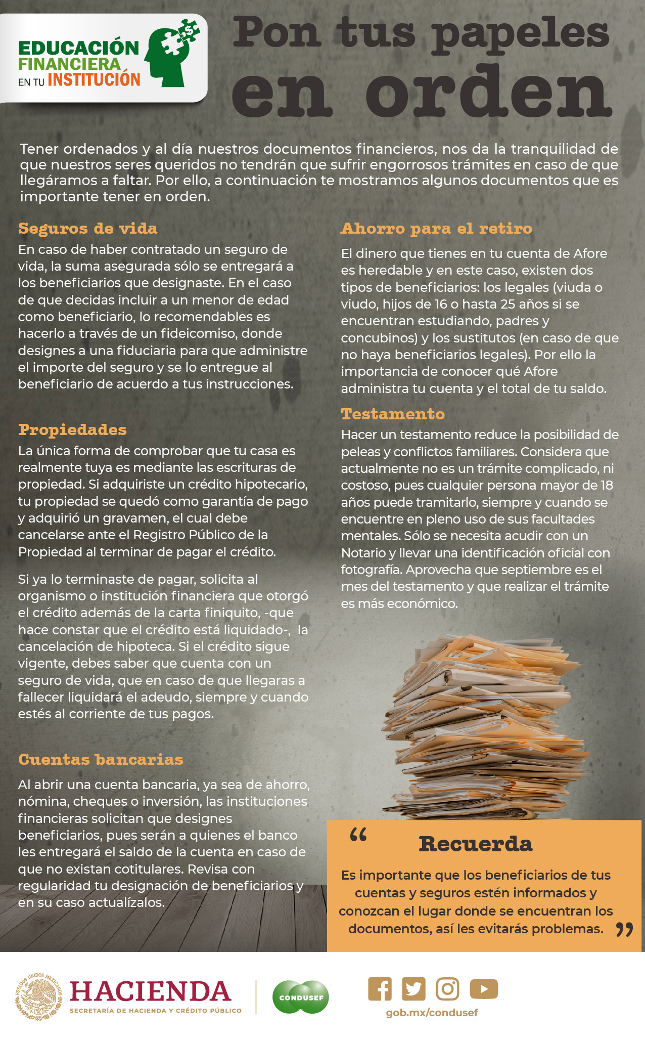 Tomarse el tiempo y el esfuerzo para ordenar los documentos personales, es de suma importancia, te dará tranquilidad tanto a tí, como a tu familia. Te compartimos algunos documentos que son fundamentales tener en orden.