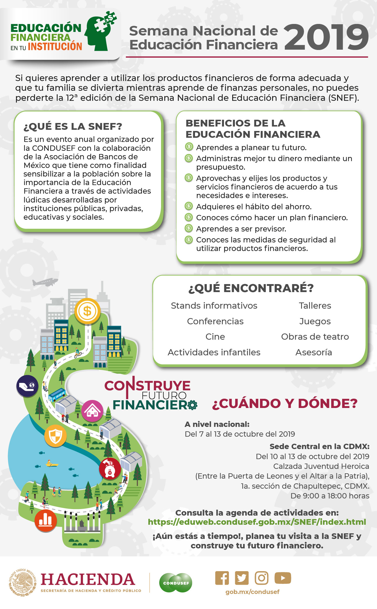 Se acerca la Semana Nacional de Educación Financiera, te invitamos a asistir para que conozcas acerca de la importancia de cuidar las finanzas y administrar mejor tu dinero. Te compartimos algunos beneficios de la educación financiera, así como lo que encontrarás en este gran evento, organizado por los expertos, la CONDUSEF.