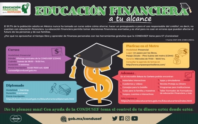 La Comisión Nacional para la Protección y Defensa de los Usuarios de Servicios Financieros (CONDUSEF) pone a tu disposición el curso en línea: Educación Financiera para Todos, cuyo objetivo es brindar de forma sencilla, didáctica e interactiva, los temas básicos para el manejo correcto de tus finanzas personales.